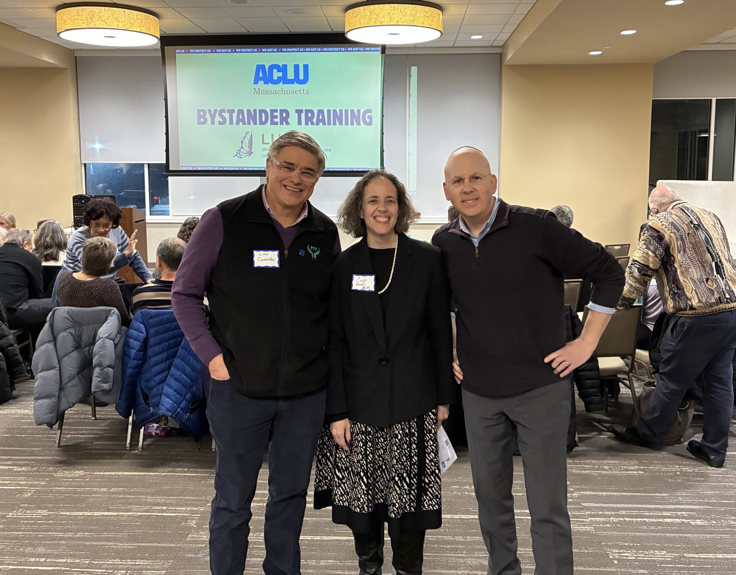 The sessions—one hosted at a UCC church in Natick and the other at Temple Beth Shalom in Needham—brought together approximately 110 participants from diverse faith communities, united by a shared commitment to protecting immigrant neighbors. Delivered in partnership with the ACLU, Jewish Alliance for Law and Social Action (JALSA), and the Religious Action Center, with support from the Jewish Community Relations Council of Greater Boston (JCRC), the trainings reflected a powerful multifaith coalition. Together, clergy, lay leaders, and community members across religious traditions were empowered with practical tools to live their values and take meaningful action in support of justice and human dignity for all.